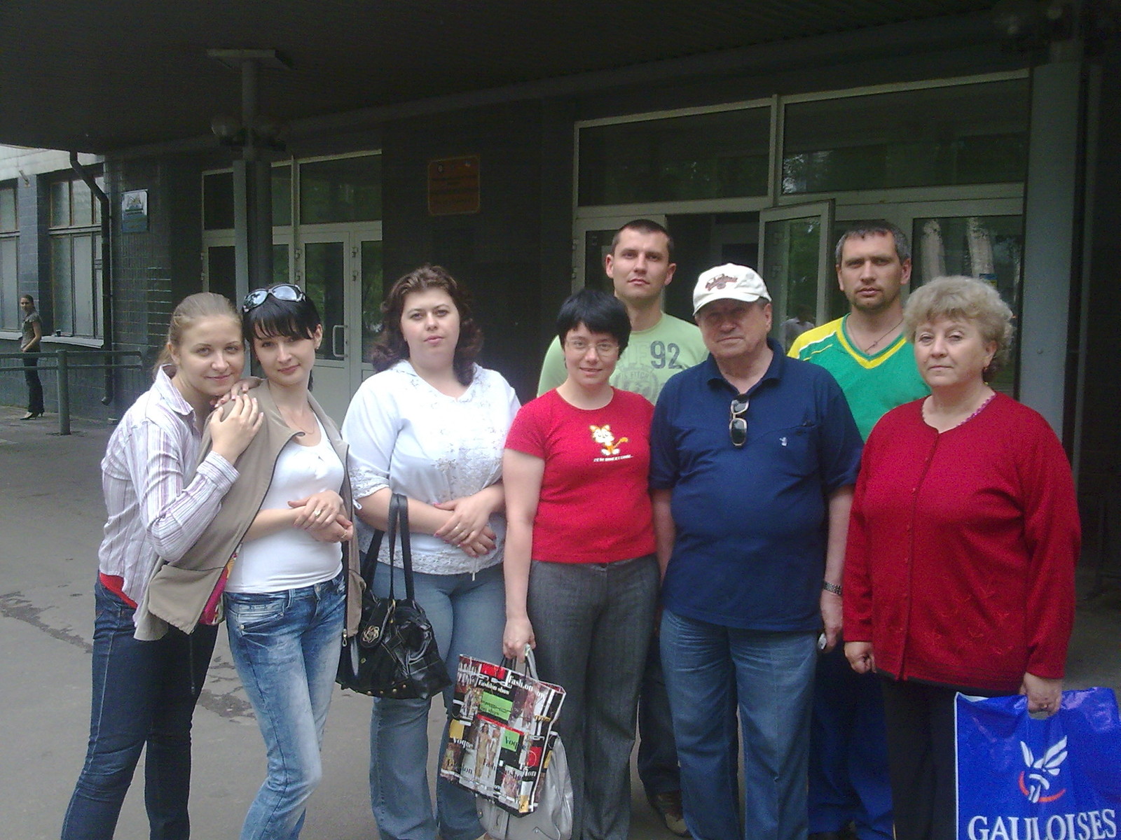 Наша группа с преподавателем (в кепке) отправляется на практику по геологии.